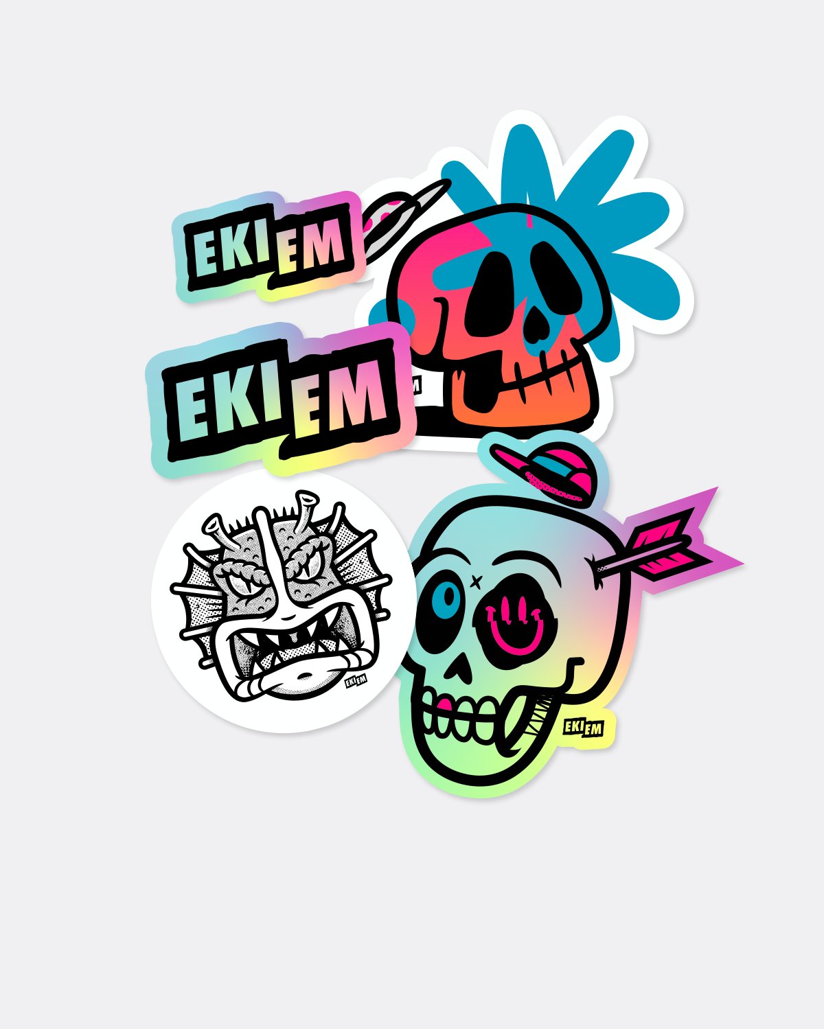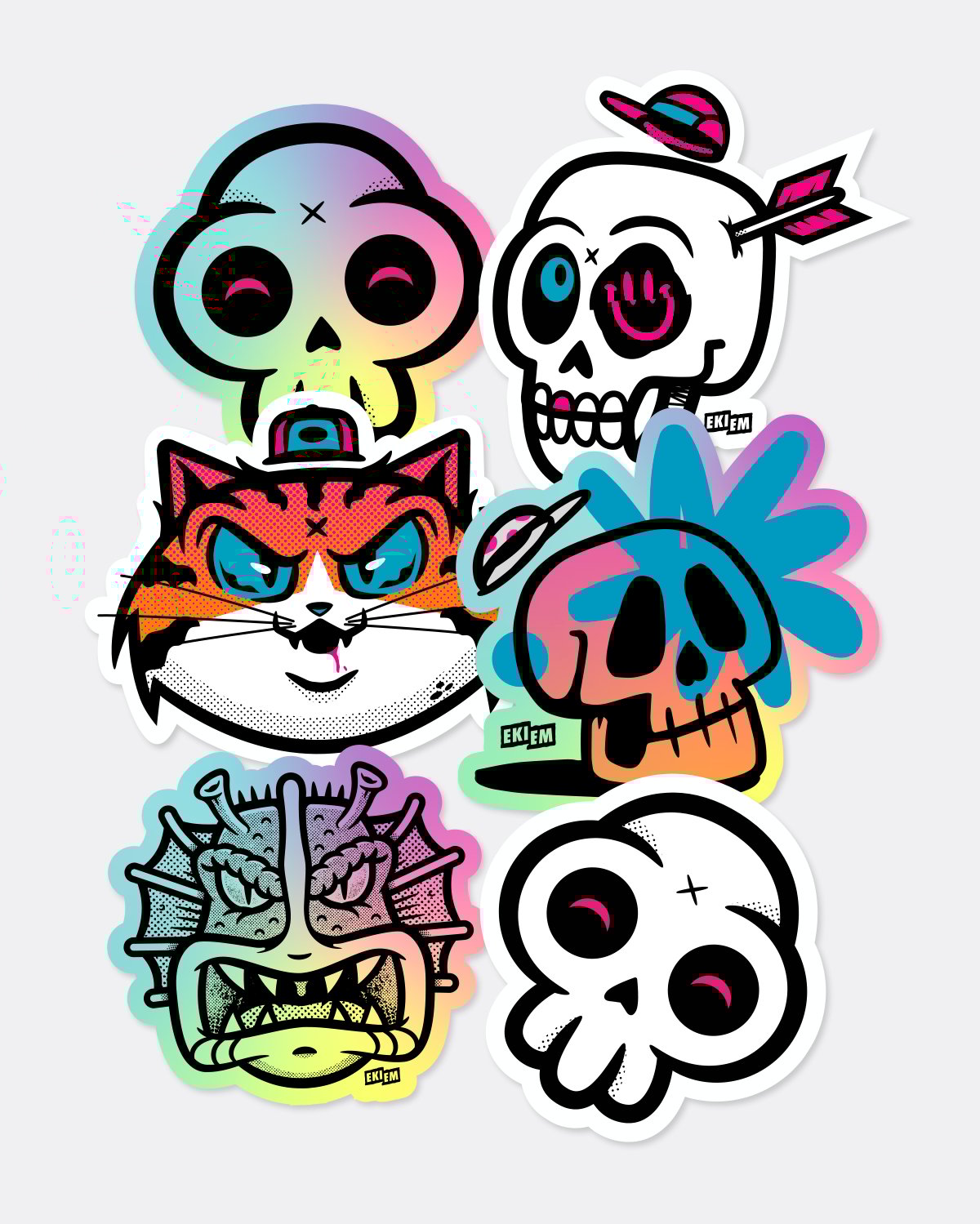 Pack of 12 assorted cmyk stickers.